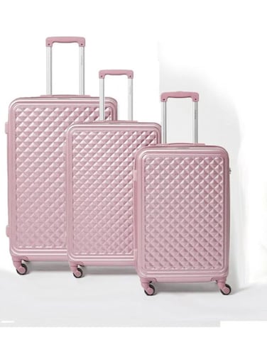 Partner 3-Piece Textured Checkered Luggage Trolley Set, Light Pink