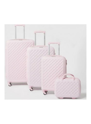 Partner 4-Piece Textured Checkered Luggage Trolley Set, Pink