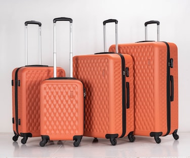 • LUGGAGE SET: 4 PCS ABS trolley luggage which is high-strength durable and scratch resistance. These 4-luggage are 20 inch- [55cm(H) x 23cm(W) x 34cm(L)] 2 kg, 24 inch – [65cm(H) x 30cm(W) x 46cm(L)] 3 kg, 28 inch – [75cm(H) x 37cm(W) x 56cm • PREMIUM QUALITY MATERIAL: Our trolley bag set is made of 100% ABS material, strong, long-term durability, anti-scratch and lightweight. It is so easy and all your stuff will be well arranged. • 360-DEGREE SPINNER WHEELS: The set of 4 multi-directional spinner wheels allow for smooth effortless 360°-degree free-weight maneuvering making the suitcase very stable and reliable. • Lock & Handle: This luggage includes a built-in 3-digit number lock to secure your belonging into the suitcase for added security and a two-stage push button handle to adjust multiple heights which pick-up handles easy to lift and transfer. • INTERIOR DESIGN: Interior compartment is fully designed with color-matched and includes features double-sided packing; a zippered organization pocket and garment restraint straps to hold your clothes in place.