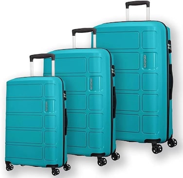 The American Tourister Summer Splash 3 Piece Luggage Set offers a stylish and durable travel solution, featuring cabin, medium, and large cases made from hardwearing polypropylene material. With dimensions of 50 x 31 x 77 cm and weighing 11.4 kg, this set ensures ample packing space while remaining lightweight. Equipped with 8 spinner wheels and an adjustable trolley handle, it guarantees smooth maneuverability and comfortable grip. The inclusion of a 3-digit TSA lock ensures security during travel. Internally, each case is lined with a zipped divider in the top compartment and elastic ribbon straps in the bottom compartment, facilitating organized packing. With top and side handles on the medium and large cases, lifting heavier luggage becomes effortless, making this set an ideal choice for any travel enthusiast.