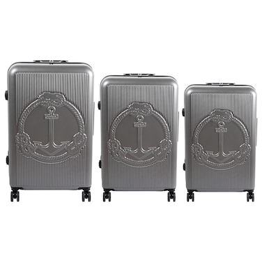 Biggdesign Ocean Carry On Luggage Set, Hardshell Luggage with Spinner Wheel, Travel Suitcase, Lock System, Lightweight, Gray, 3 Pcs.