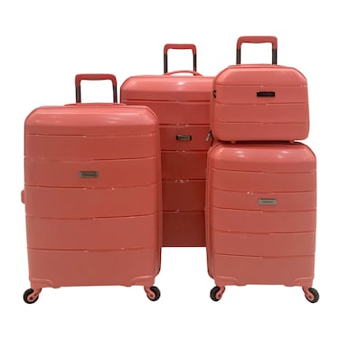 The Track Universal 4 Wheel Hard Casing Luggage Trolley is a set of four suitcases in different sizes, including 72cm, 62cm, and 51cm, as well as a 35cm briefcase.