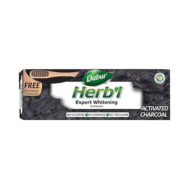 Dabur Herbal Expert Whitening Charcoal Toothpaste With Toothbrush Black 150g