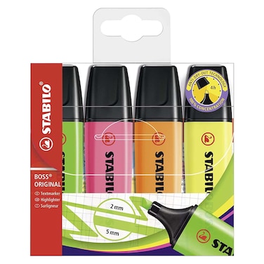 The Stabilo Boss Original Highlighter Multicolour 4 PCS is a set of four vibrant and high-quality highlighters.