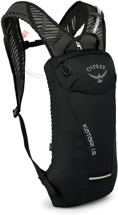Ideal for fast rides that require only the water on your back, the Katari 1.5 lets you carry the bare minimum. The , low-profile design Features an included 1.5-liter reservoir that slides into its own exterior pocket with a bite valve that attaches magnetically to a sternum strap. A well-ventilated mesh harness gives exceptional airflow and rolled, soft-edge shoulders provide contoured comfort and stability. In the event you find yourself outside when the sun goes down, a loop for your rear tail light lets you be seen. Made with mountain bikers in mind, but practical for any activity where hydration is a must. Key attributes : LOW-PROFILE CARRY When carrying water and a few essentials are all that's needed, the Katari/Kitsuma provides a lightweight option that rides close to your back for stability on any trail. RESERVOIR INCLUDED An Osprey Hydraulics LT 1.5L or 2.5L reservoir keeps you hydrated all day long and stores in an external hydration compartment to protect pack contents from accidental spills. RIDE STABILITY Our rolled, soft-edged harness contours to the upper shoulders to keep the pack close to your body and provide stability. Features Low-profile design with AirScape backpanel and rolled, soft-edged harness for maximum comfort Dedicated hydration compartment with included Osprey Hydraulics LT 1.5L reservoir by Hydrapak Magnetic sternum strap bite valve attachment Zippered, scratch-free heat-embossed slash pocket Blinker light attachment CARRY INFORMATION AIRSCAPE SUSPENSION Atilon foam framesheet allows dynamic body movement and distributes load across entire backpanel AIRSCAPE BACKPANEL Ridged airmesh-covered foam with center air channel for excellent ventilation BIOSTRETCH HARNESS Lightweight, ridged airmesh harness provides ventilated comfort Rolled, soft-edged harness designed to contour the shoulder providing comfort and stability