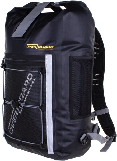Overboard Pro-Light Waterproof Backpack With a seamless high frequency welded construction and a simple to use two-way sealing system (top or side), making it fully submersible, this 20 Litre waterproof backpack really should be your Backpack of choice. The Pro-Light range of Waterproof Backpacks are manufactured from feather light and environmentally friendly TPU materials, so are designed for when every ounce counts. From the large front mesh zip pocket with reflective strips to the padded shoulder straps and air-flow back panel, this feature-packed OverBoard Pro-Light Waterproof Backpack is a comfortable and handy bit of kit for any water-based sportsman or cyclist.