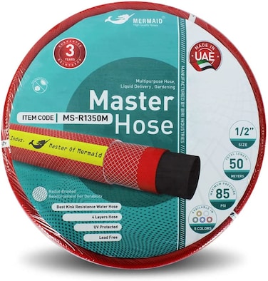 This red color water hose is Suitable for multipurpose use, this flexible lawn and garden hose is easy to operate and maintain for residential use also for light industries. This water hose is 1/2 inch diameter and 50m length. Easily water your plants or yard with quality garden hose !!