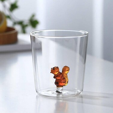 1CHASE Borosilicate Three Dimentional Animal Design Glass Cups 300ml (Squirrel)