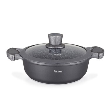 Fissman Shallow Pot Prestige 28X8cm / 4.1 Ltr With Glass Lid (Aluminum With Non-Stick Coating)