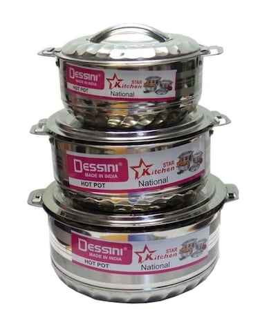 Pack Of 3 Stainless Steel Big Size Hotpot Set Silver