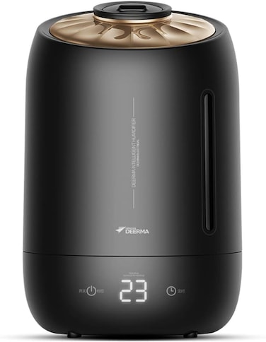 Deerma F600S Ultrasonic Humidifier Aromatherapy Oil Diffuser Three Gear Touch Temperature Intelligent Mist Maker Timing Function Intelligent Constant Humidity For Home And Office, 5L Capacity - Black