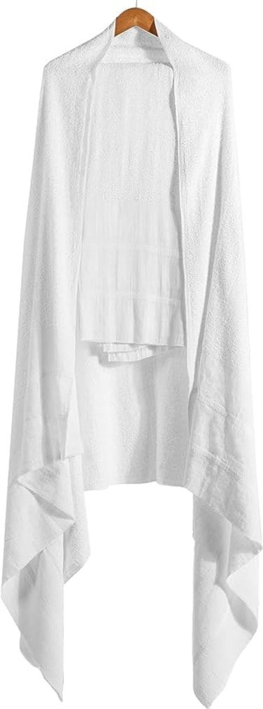 Pure Extra Long Staple Combed Cotton Ihram Towel - White. 2 Piece Set Large Size. Weight: Approximately 1000 gram. Ihram dress size: width 210 inches * length 105 inches.