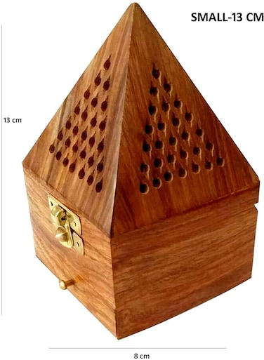 ALSAQER Wooden Incence Bakhoor Burner Madkhan/Mabkhara Pyramid shape Charcoal Bakhoor Burner-Medium