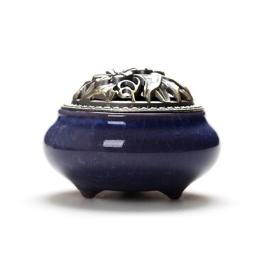 Ceramic three-legged incense coil incense burner (Dark Blue)