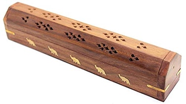- Govinda 12" Elephants Five-Inlays Wooden Coffin Incense Burner. Pack of 2 This beautifully handcrafted wooden incense sticks holder allows one to store away incense sticks in style. These sticks can be neatly stored in a compartment on the base of the burner, which can be opened from the side allowing for the sticks to easily slide out. The top portion is used to hold & light the incense sticks, and once lit, the lid can be closed and placed anywhere in the room. As the incense burns, residue is dropped on the tray, while the freshness and fragrance of the incense sticks quietly seep through the wooden passageways and encompass the room in which the burner is placed.