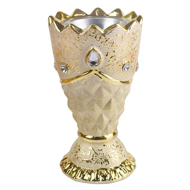 Made from high-quality gold-plated ceramic, it features a unique crown shape that adds a touch of luxury to any space. This incense burner is perfect for burning your favourite incense sticks or cones, creating a calming and soothing atmosphere.
