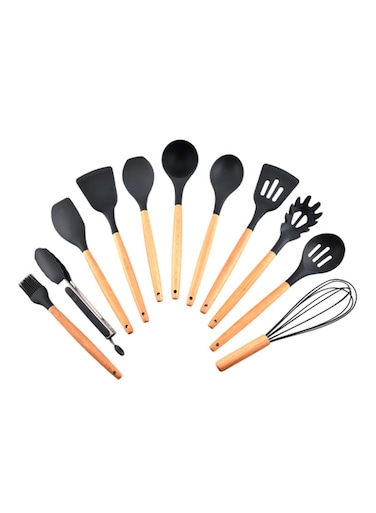11-Piece Non Stick Shovel Spoon Tool Set Black/Brown 1041g
