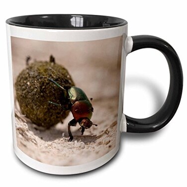 3dRose mug_72690_4"Namibia, Etosha NP, Dung Beetle insect-AF31 PSO0122 - Paul Souders" Two Tone Black Mug, 11 oz, Multicolor