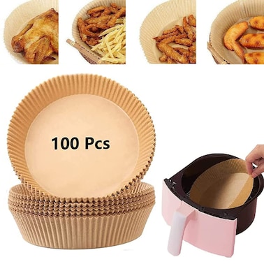 Air Fryer Disposable Paper Liner, 100PCS Non-stick Disposable Air Fryer Liners, Baking Paper for Air Fryer Oil-proof, Water-proof, Parchment for Baking Roasting Microwave (6.3inch, Natural) (1)