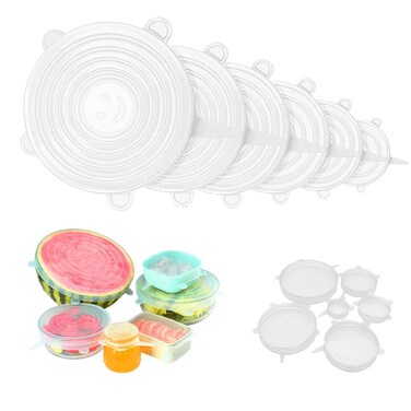 • Arabest Silicone Stretch Lids,6 Pack Reusable, durable and expandable silicon to fit various sizes of bowl covers, cups, canneds, pot and pans in dishwasher, microwave and Freezer