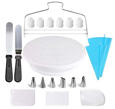 Dorsa Cake Decorating Supplies,21Pcs Cake Decorating Set With Cake Rotating Turntable, Icing Spatulas,Cake Scrappers, Cake Cutter, Piping Nozzles,Pastry Bag,Piping Tip Couplers, White, B07Mx8D33K