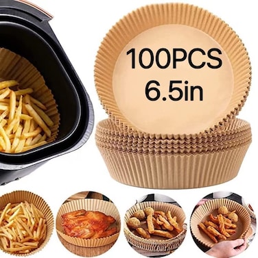 Gurixiang 100 PCS Air Fryer Disposable Paper Liner, Non-Stick Disposable Multiuse Air Fryer Liners, Contains 100pcs disposable gloves (6.3in)