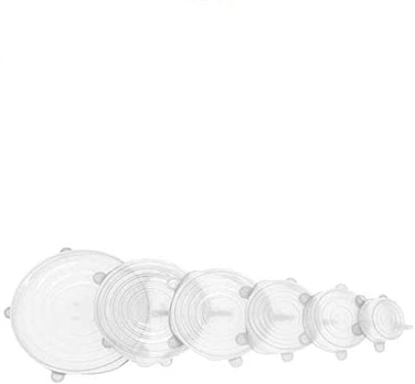 - MOSYCLE Silicone Stretch Lids 6 Pack Suction Lid - Multi Size Stretchable Covers for Bowls, Cups, Pots, Can, Mason Jar, Food Fresh Saver Cover, Freezable Microwavable Cover (WHITE)