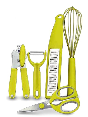 Prestige - 5 Pcs Gadget Set Blue Y Peeler Flat Grater Can Opener Scissors Whisk