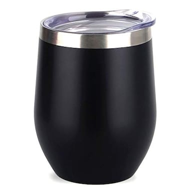 - SUNWILL Vacuum Insulated Wine Tumbler with Lid Black Stemless Stainless Steel Insulated Wine Glass 12oz Double Wall Durable Coffee Mug for Champaign Cocktail Beer Office use
