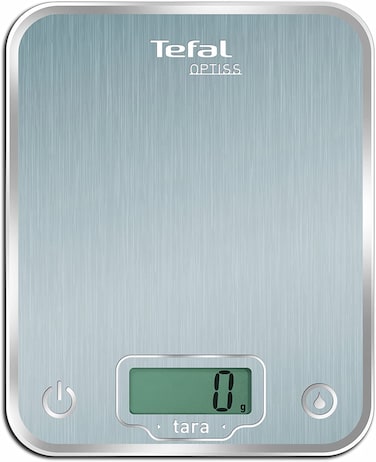 - Tefal Bc5010V0 Optiss Kitchen Scale, Grey, W 26.0 X H 20.0 X D 3.6 Cm, Stainless Steel