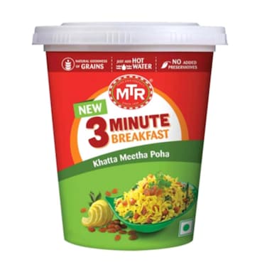 - Prepare a quick breakfast with the MTR khatta meetha poha cup to save time in the morning