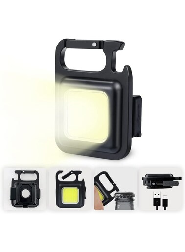 Rahalife Small LED Flashlight 800 Lumens COB Rechargeable Keychain Mini Flashlight 4 Light Modes Portable Pocket Light With Folding Bracket Bottle Opener And Magnet Base For Fishing Walking Camping