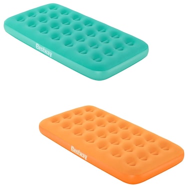 Beneath the starry sky or just indoors, the Bestway DrowsyDreamer Airbed will set your little one on a pleasant path to dreamland. For sleepovers in the living room or camp outs in the backyard, this airbed is kid focused. This airbed offers fun colors and a comfortably designed sleep surface so that your little one can cuddle in and enjoy the comfort of a good night's rest. Let them enjoy a colorful, cozy decor that shows the flair of their personality. The included Air Hammer pump inflates the bed in minutes and offers the convenience of having everything you need right inside the box. The comfortable flocked sleeping surface and sturdy coil beam construction mimics the feel of your everyday mattress. Easy to inflate, deflate and store the DrowsyDreamer Airbed will level up your sleep experience, offering convenience and comfort for even your youngest, most adventurous sleeper. This air bed will bring sweet dreams and comfort to your next nap time whether it's indoors or outside.