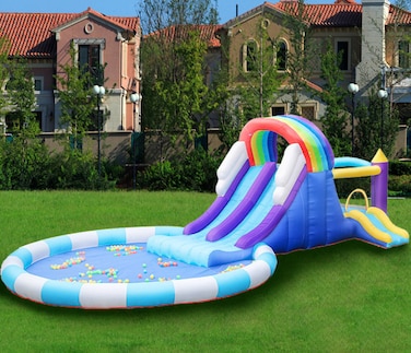 - Product:Double Slide,Single Slide, Climbing Ladder, Jumping Pad, Water Gun, Paddling Pool, and Assemble Kit