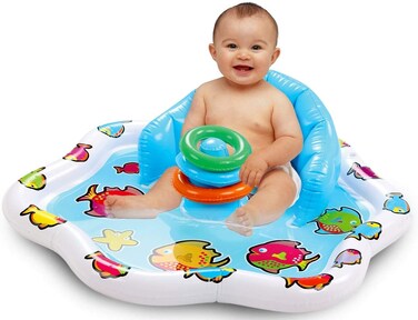 ENJOYABLE & COMFORTABLE - Make play time a fun time for your little baby infant! This inflatable mat has a built-in, 8-inch inflatable back support so your baby enjoys some fun under the sun!