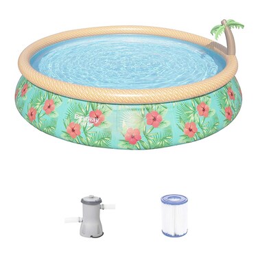Constructed with durable materials, this pool is built to last and withstand regular use. Whether you're hosting a pool party or simply lounging in the sun, the Bestway Paradise Palm Fast Set Pool offers endless hours of enjoyment for all ages.