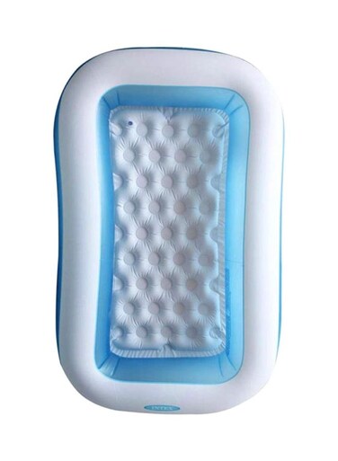 - <p>Soft inflatable floor ensures comfort<p>Rectangular shape offers wide area<p>Good for use on balconies and terraces<p>Rectangular pool water capacity is up to 128L<p>Blue/White<p>57403<p>166x100x28 cm