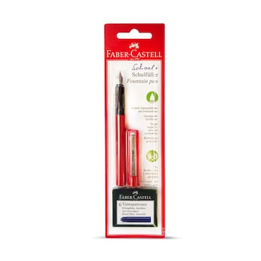 The Faber-Castell School Fountain Pen with Ink Cartridges Red 6 PCS is a high-quality fountain pen designed specifically for students.