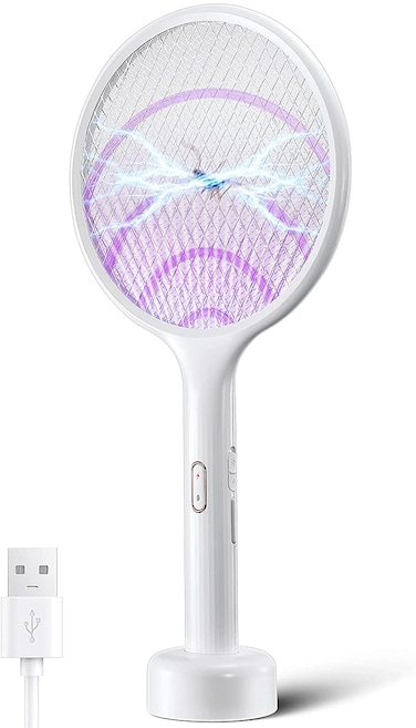 lavish Electric Fly Swatter 4000 Volt Bug Zapper Dual Modes Mosquito Killer with Purple Mosquito Light Rechargeable for Indoor and Outdoor Home Office Backyard Patio Camping