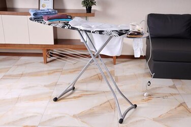 FOLDABLE AND DURABLE - The iron stand and iron table can be folded onto itself, saving you some storage space when not in use. Perfect for use in condominiums and other dwelling units with limited free space. The large ironing surface is sturdy and adjustable and will last you for a long period of time.
