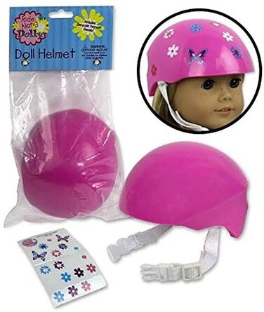 Pink Bike Helmet for American Girl & 18" Dolls - Includes Bicycle Helmet w Decorative Decal Stickers Accessory --Bike Helmet For American Girl Doll Helmet - Pink Bike Helmet with Easy Strap - Decorate Yourself Decals Make sure your doll is well protected with her very own helmet. Whether on a bike ride in her Ride Along Dolly Bike Seat, or ice skating, roller skating, scooting or more, this essential doll helmet is a must have for any American Girl Sized Doll.