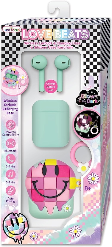 - 1 Pair of Wireless Earbuds, 1 Charging Case, 1 Glow-in-the-Dark Silicone Case with Keychain