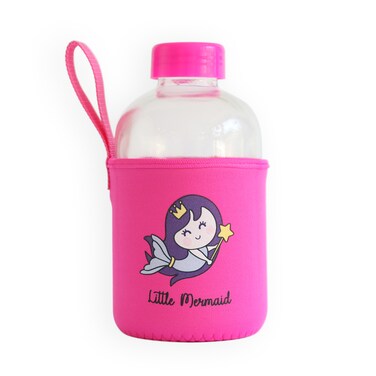 Milk&Moo Little Mermaid Kids Glass Water Bottles, Water Bottles For School, Neoprene Sleeve, Leak Proof, Spill Proof, BPA Free, Toddler Water Bottle, Cute Design, 20 oz, 600 ml