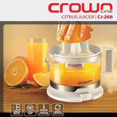 Crownline CJ-268 Citrus Juicer, Capacity: 500 ml jug, 2 juicer cones, 220-240V, 50/60 Hz, Power: 19W