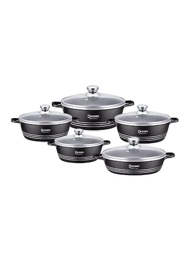 Dessini 10-Piece Non-Stick Cookware Set, Black, 1 X Casserole (20), Casserole (24), Casserole (28), Casserole (32), Shallow Casserole (28)Cm