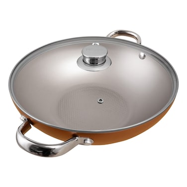This kadai is made with a durable non-stick coating, ensuring that your food doesn't stick to the surface. It also comes with a convenient pan holder, making it easy to transfer the kadai from the stove to the table.