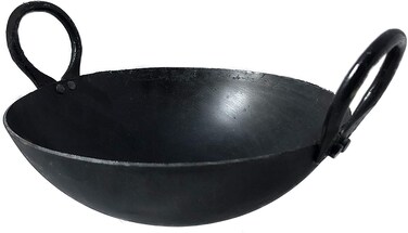 Taj Iron Deep Kadai/Iron Wok With Handles For Deep Frying (23 Cm)