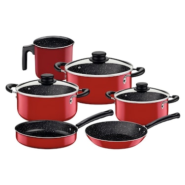 Tramontina 9 Pieces Red Aluminum Cookware Set with Interior and Exterior Starflon Max Nonstick Coating