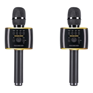 Magic Sing MP30 Bluetooth Mobile Karaoke Microphone With Speakers Black And Gold 2 PCS