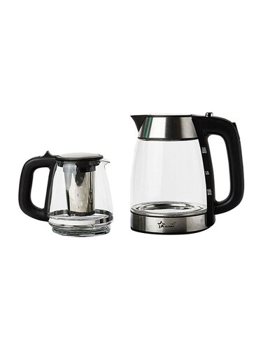 Generic Electric Kettle With Tea Pot 8008, Black/Silver/Clear